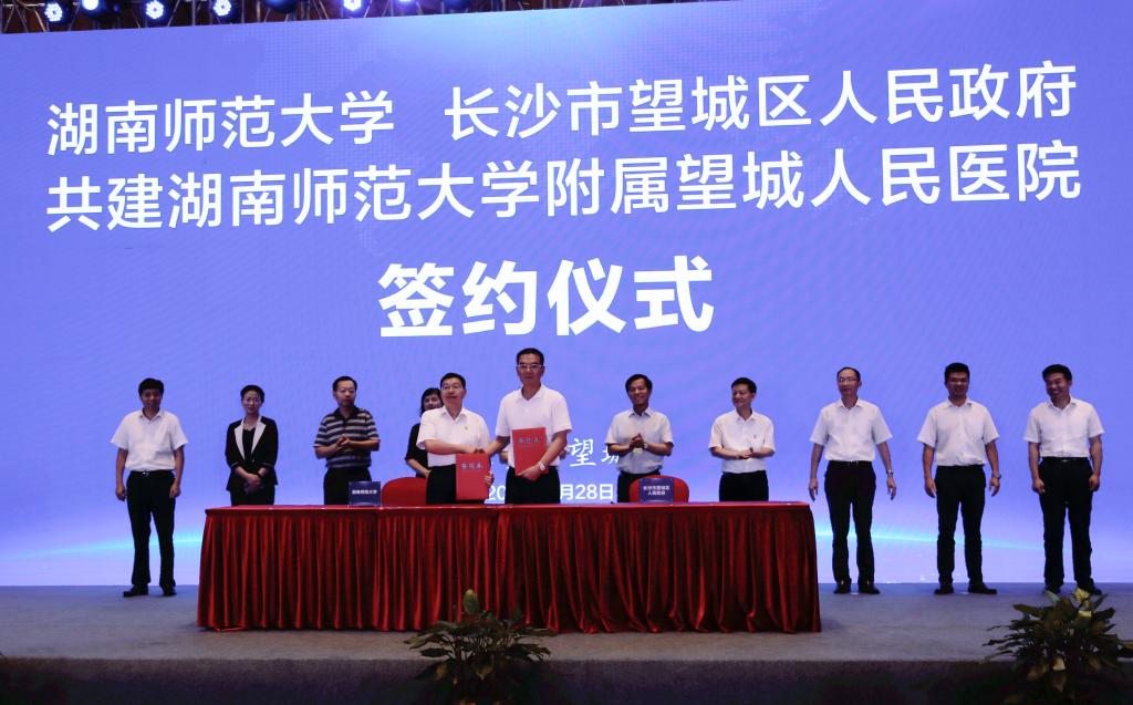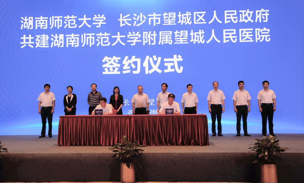 省教育厅高等教育处、望城区直相关部门、区人民医院,以及我校相关部门、二级学院、附属第一医院(省人民医院)有关负责同志参加签约仪式。