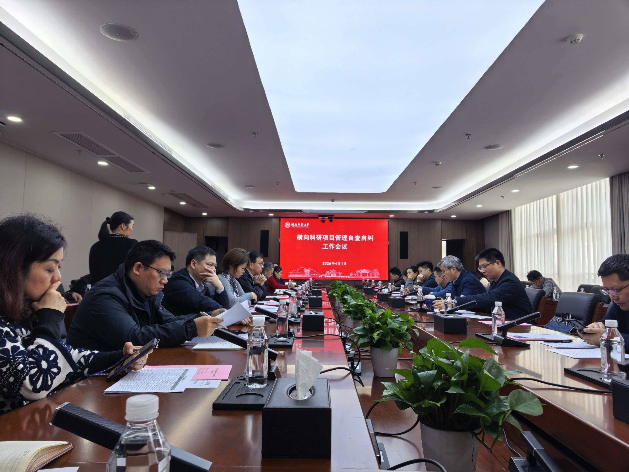 4月1日上午,横向科研项目管理相关问题自查自纠工作布置会议在三棵树广场科研楼召开。省纪委监委驻湖南师范大学纪检监察组(校纪委)、审计处、财务处、科学技术处、社会科学处等相关单位负责人及工作人员,各二级学院分管科研副院长、科研秘书参加会议。
